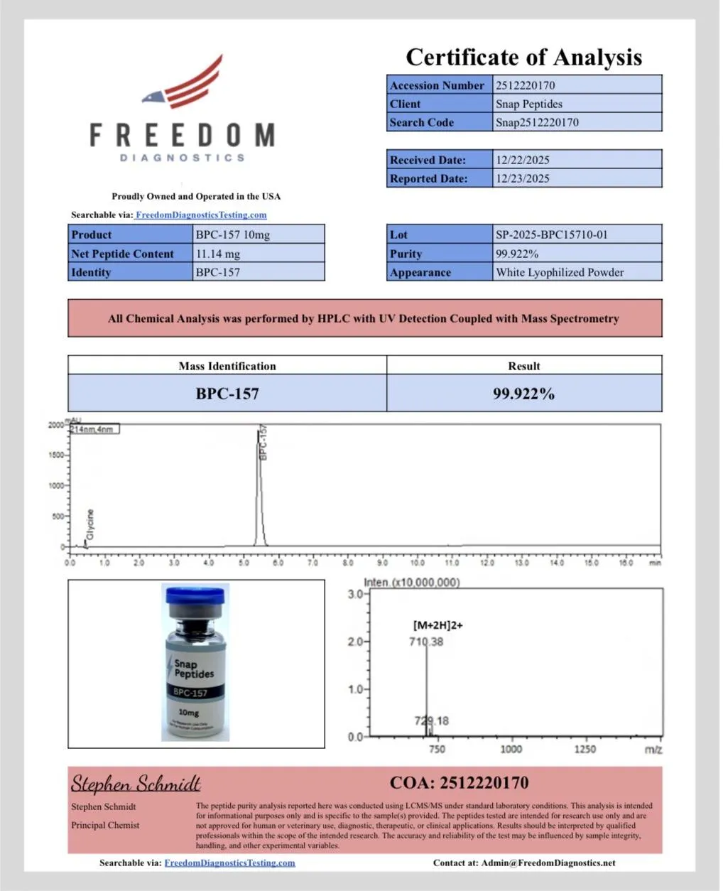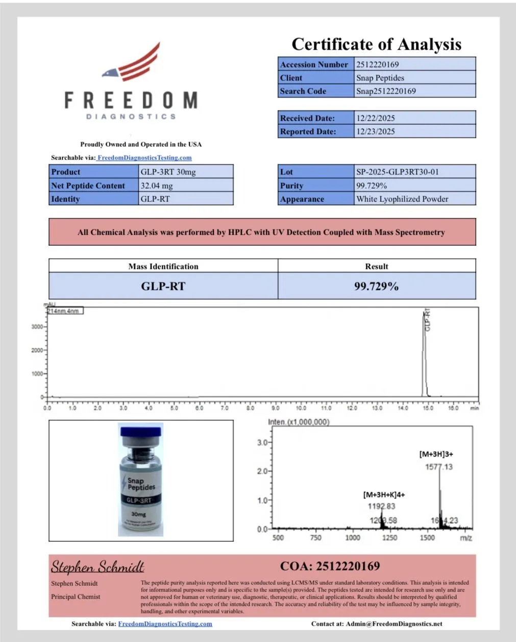 All products are intended solely for research, laboratory, or analytical purposes and are not for human consumption. The statements and products featured on this site have not been evaluated by the FDA and are not meant to diagnose, treat, cure, or prevent any condition. Snap Peptides is neither a compounding pharmacy nor a chemical compounding facility as defined under section 503A of the Federal Food, Drug, and Cosmetic Act, nor is it an outsourcing facility as defined under section 503B of the same act.